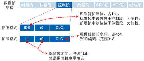 與數(shù)據(jù)幀相比,遠(yuǎn)程幀結(jié)構(gòu)上無數(shù)據(jù)段,由6個(gè)段組成,同 理分標(biāo)準(zhǔn)幀格式和擴(kuò)展幀格式,且RTR位為1(隱性電平)。